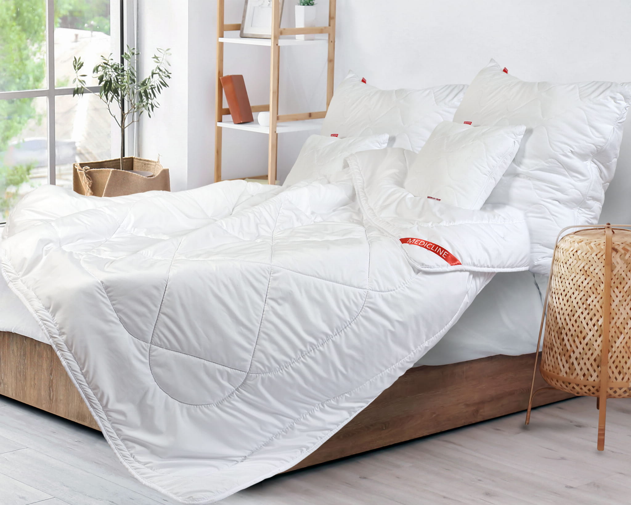 - Doskonała cyrkulacja powietrza wewnątrz kołdry i poduszki pozwala ciału oddychać i optymalizować temperaturę podczas snu.