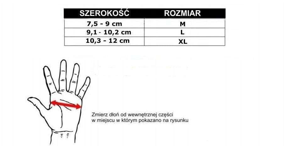 W przypadku stosowania pod rękawice MMA owijek bokserskich należy dodać do szerokości dłoni ok 0,5 cm