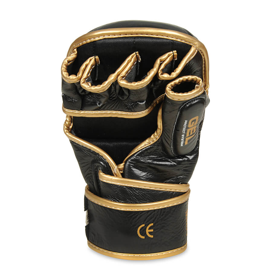 Odsłonięta wewnętrzna część rękawicy zapewnia możliwości chwytne oraz zapobiega poceniu się dłoni podczas treningu. Rękawice wykonano bydlęcej skóry naturalnej dzięki czemu są bardzo odporne na uszkodzenia. Wnętrze rękawicy zostało obszyte gładkim, przyjemnym w dotyku materiałem zapobiegającym obtarciom nawet podczas bardzo intensywnych treningów.