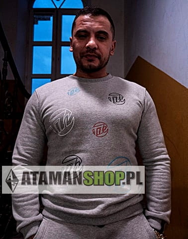 Bluza TIW szara z kolorowymi logami TIW wear. Kolory logówek to: czerwony, czarny, żółty, niebieski. Sportowa bluz wysokiej jakości.