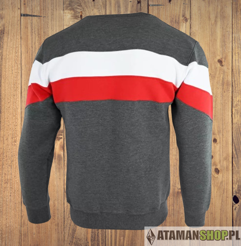 Grafitowa bluza patriotyczna bez kaptura – bawełniana, haftowany Orzeł, biało-czerwony pasek