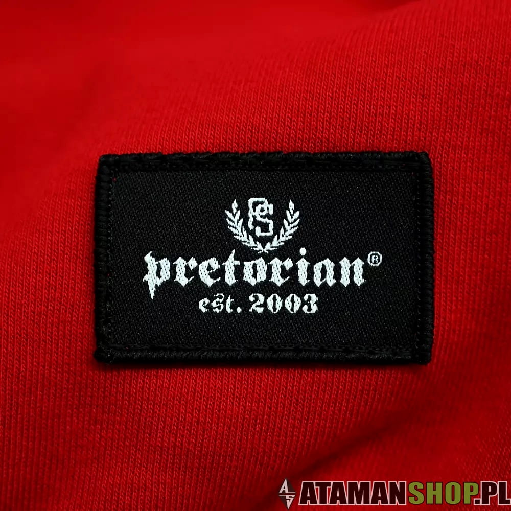 Klasyczna, czerwona bluza marki Pretorian z estetycznym i dopracowanym nadrukiem.
