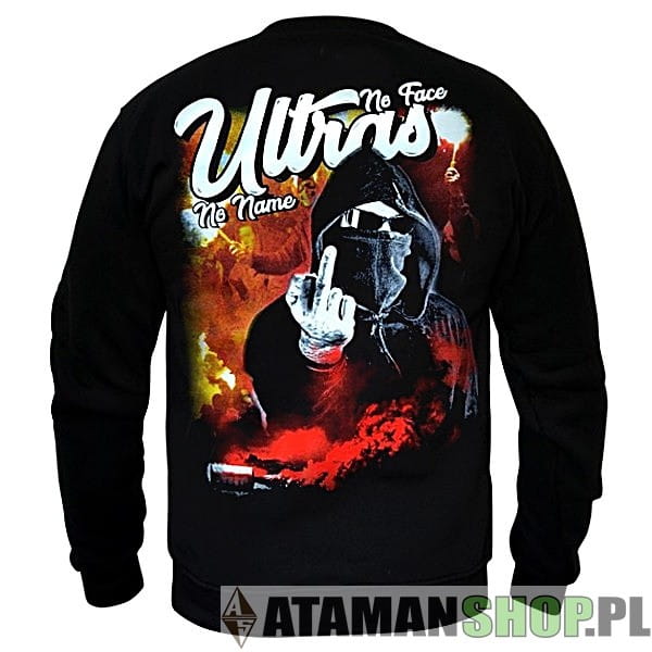 Z przodu bluzy napisy z kolorem, na plecach duży nadruk Ultras