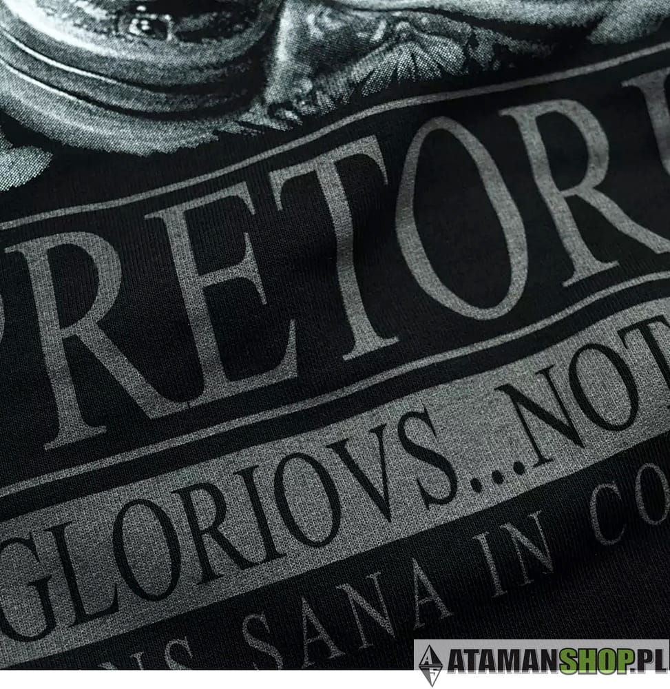 Czarna bluza sportowa Pretorian to model bez kaptura, który łączy mocny, uliczny charakter z wygodą codziennego noszenia. Na froncie znajduje się wizerunek Gladiatora, symbol odwagi, siły i walki do końca. To propozycja dla osób, które cenią sobie zdecydowany styl i nie boją się wyróżniać.