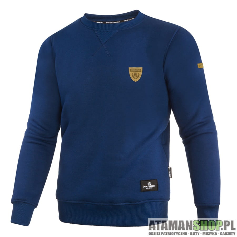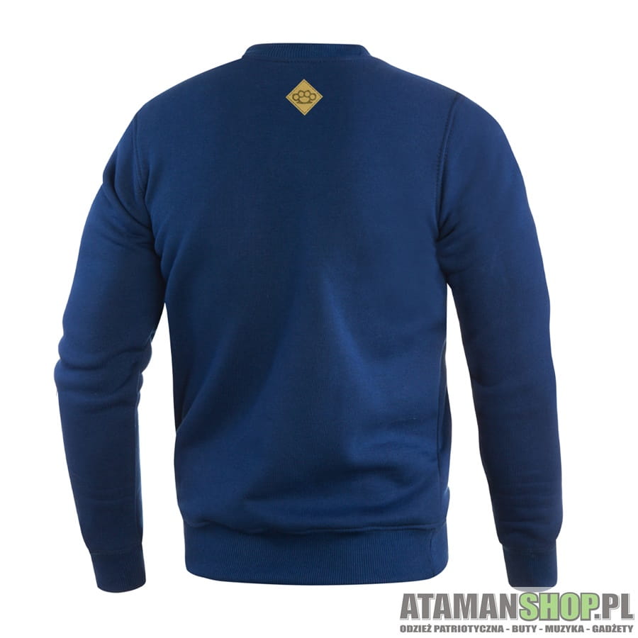 bluza granatowa bez kaptura, bluza sportowa Shield Logo, bluza streetwear polska, bluza bawełniana gruba, bluza crewneck granatowa, bluza elegancka sportowa, bluza dyskretna kolekcja, bluza polska produkcja