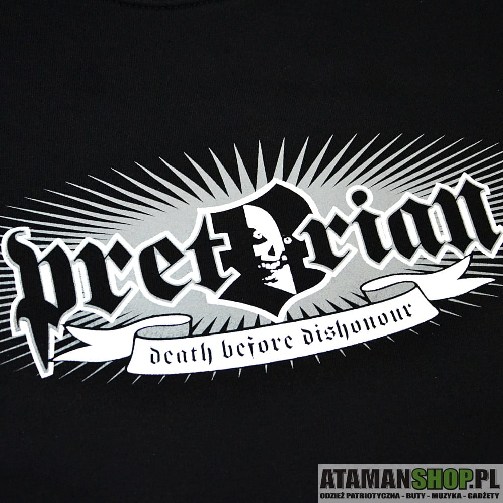 Klasyczna czarna bluza marki Pretorian z kolekcji streetwear. Wzór z mocnym i konkretnym przekazem "Death Before Dishonour”. Bluza wykonana z wysokogatunkowej grubej bawełny. Odzież marki Pretorian cechuje najwyższa jakość wykonania oraz dbałość o najdrobniejsze szczegóły i detale. Produkt w pełni wyprodukowany w Polsce.
