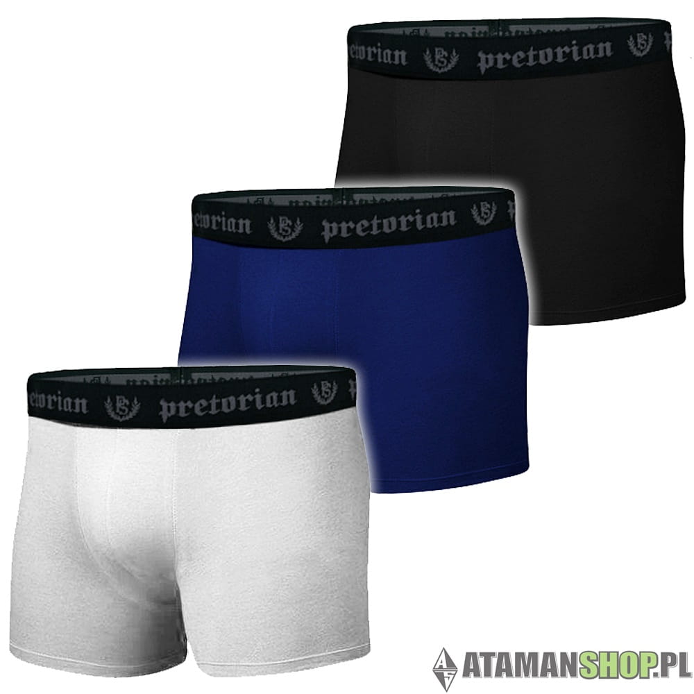 Wysokiej jakości bawełniane bokserki sportowe uliczne marki Pretorian. Wykonane z miękiego, miłego w dotyku materiału. Idealnie sprawdzą się podczas codziennego użytkowania oraz jako bokserki pod spodenki do sportów walki. Szeroka, elastyczna gumka w pasie z wizerunkiem logo marki Pretorian. Zestaw zawiera 3 sztuki. Całość zapakowana w ozdobne, plastikowe pudełko.