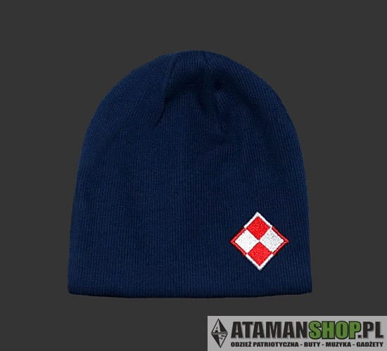 Czapka jesień/zima atamanshop.pl, dziana 100% bawełna. Seria Dywizjon 303. Haft- szachownica lotnicza.
