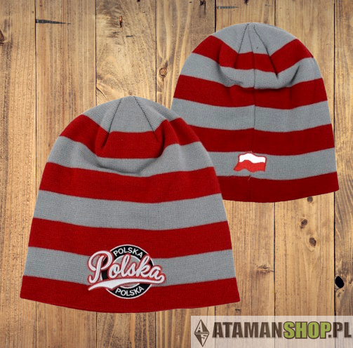 Czapka zimowa Polska – haft, flaga, paski czerwono-czarne, polska produkcja