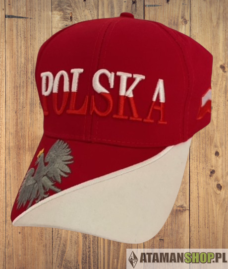Czapka sportowa daszek godło Polska czerwona haft, produkcja Polska