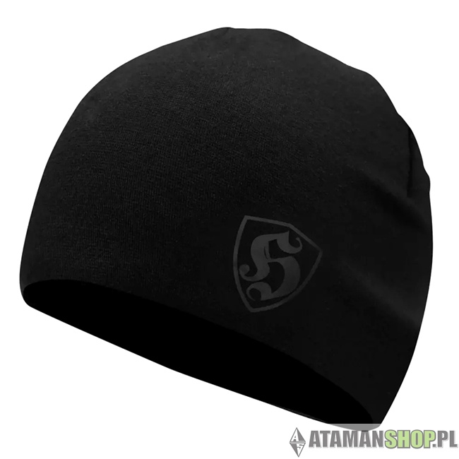 Czapka czarna sportowa zimowa Hooligans Hools – cienka, bawełniana, z czarnym nadrukiem