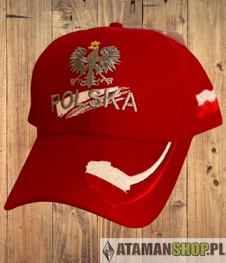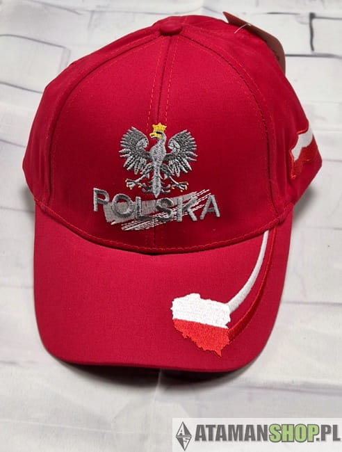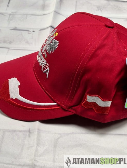 Czapka sportowa daszek godło Polska czerwona haft, produkcja Polska