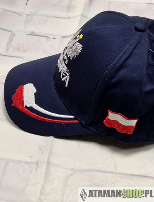 Czapka z daszkiem Orłem Polska flaga haft granatowa, produkcji polskiej