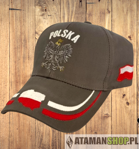 Czapka z daszkiem patriotyczna Orzeł Flaga szara haft