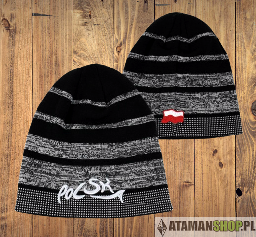 Czapka zima napis Polska czarna