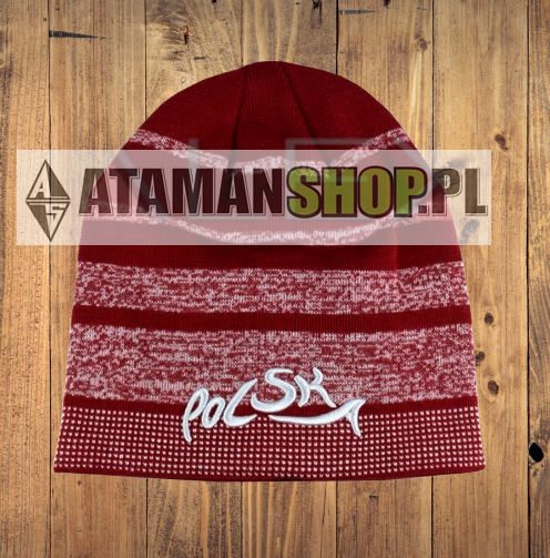 Czapka zima napis Polska czerwona