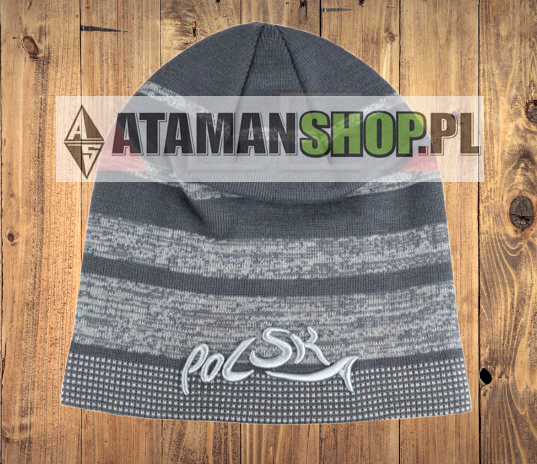 Czapka Zimowa Patriotyczna Szara – Ciepła z Haftem „Polska”