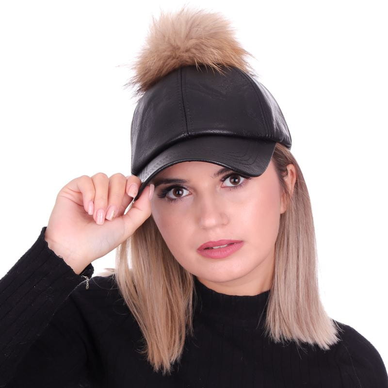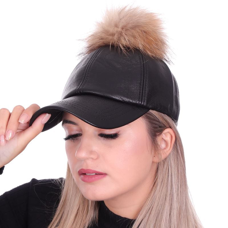 pomponem. Klasyczna forma skórzanej czapki została przełamana