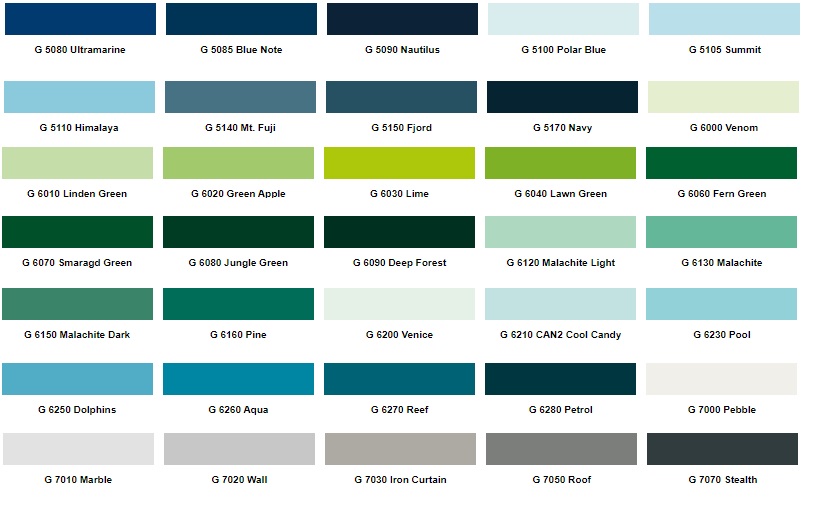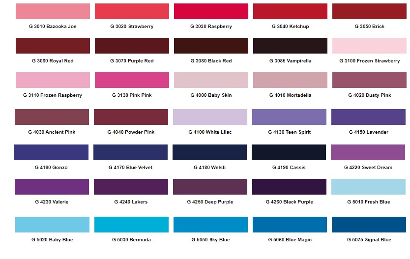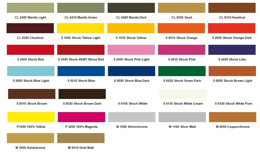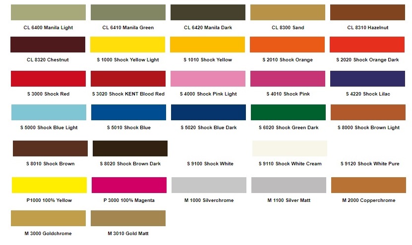Dostępne 215 akrylowych kolorów , 2 metaliki oraz 3 chromy