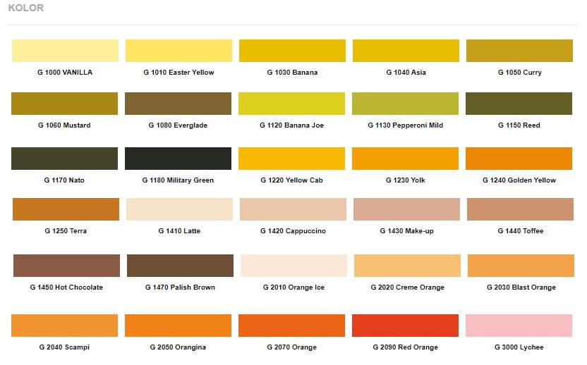Lista kolorów: