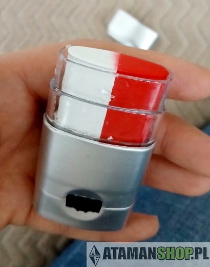 farbka biało czerwona do twarzy, sztyft kibica, farbki patriotyczne, farbka do policzków kibic, biało czerwony face paint, barwy narodowe farbka, szminka kibica, farba do twarzy sport