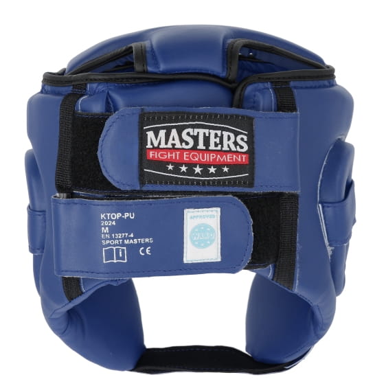 Klasyka MASTERSA, turniejowy kask KTOP-PU z zabudowaną górą głowy. Kask bokserski przeznaczony do treningu wysokich kopnięć. Posiada atest WAKO.