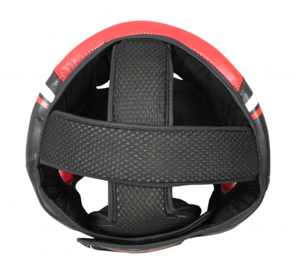 Kask bokserski w pełni zabudowany, z ochroną kości policzkowych, brody i górnej części głowy. Wkład amortyzujący ręcznie klejony z kilku warstw pianek zapewnia bezpieczeństwo podczas treningu.