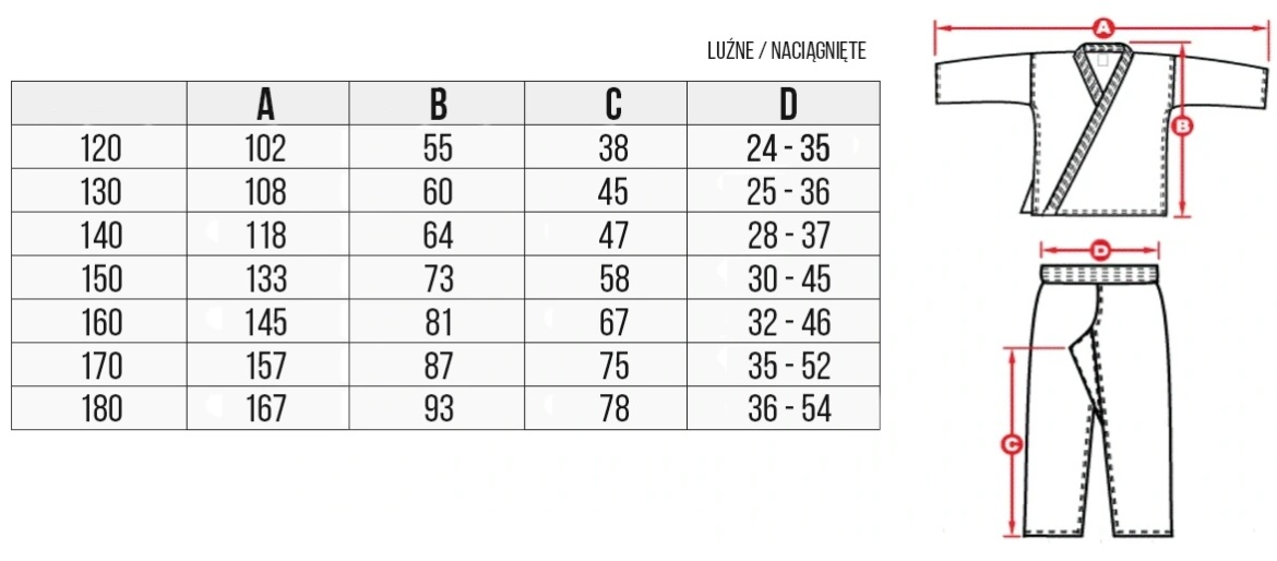 Dzięki lekkiej konstrukcji kimono nie obciąża dziecka i pozwala na naturalne wykonywanie kopnięć, bloków oraz technik ręcznych. Dobrze dobrana gramatura sprawia, że strój jest przyjemny w noszeniu i nie powoduje dyskomfortu nawet podczas intensywnego ruchu.