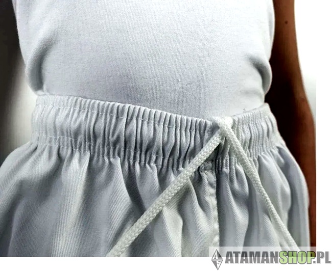 Do kompletu dołączony jest biały pas, który pozwala dziecku od razu rozpocząć trening bez konieczności dokupowania dodatkowych akcesoriów. Pas jest odpowiednio dopasowany do potrzeb najmłodszych i symbolizuje pierwszy etap nauki karate.
