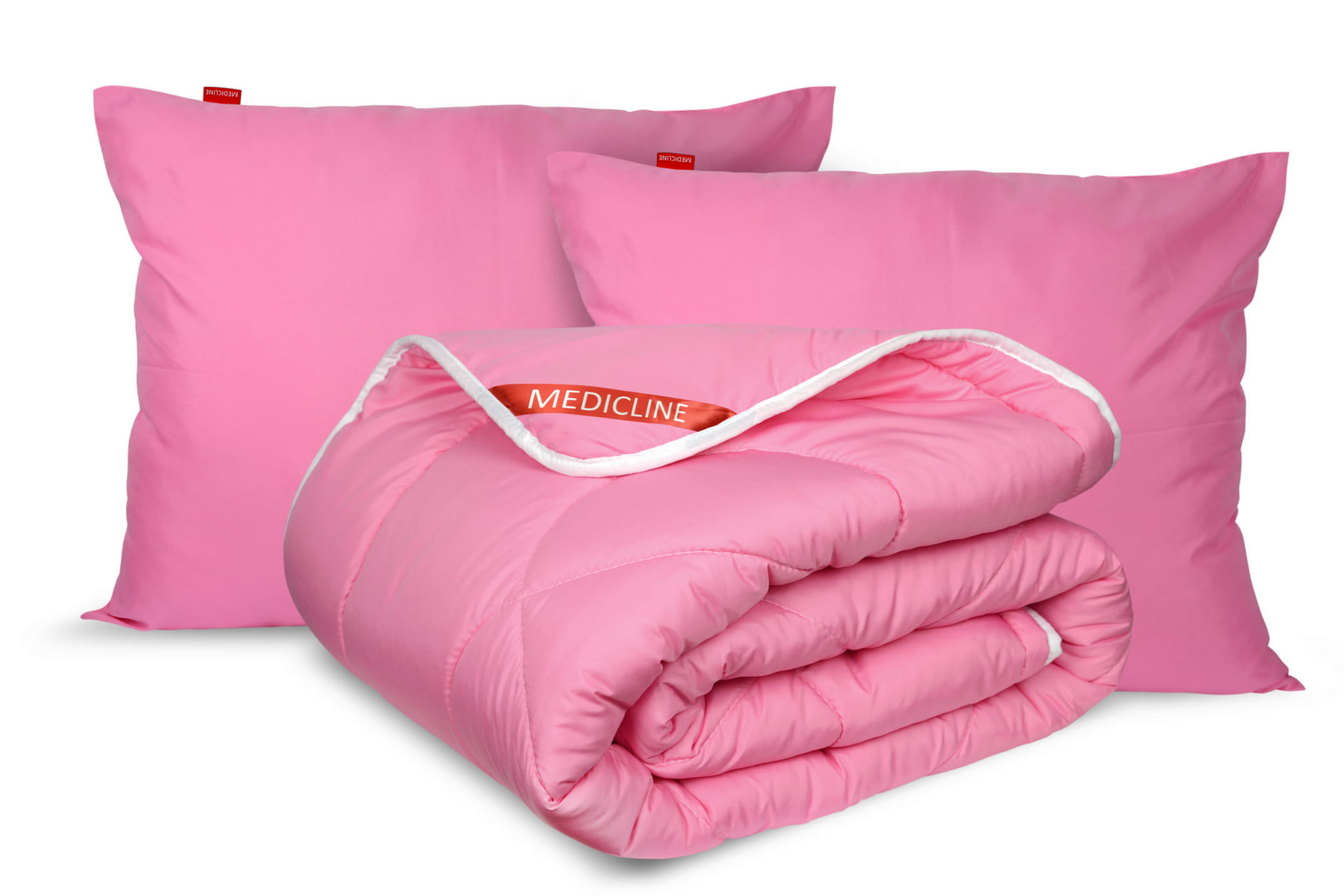 Zestaw całoroczna kołdra z lamówką z pikowanej mikrofibry różowej + 2 duże poduszki 70x80, GWARANCJA spokojnego i dobrego snu!