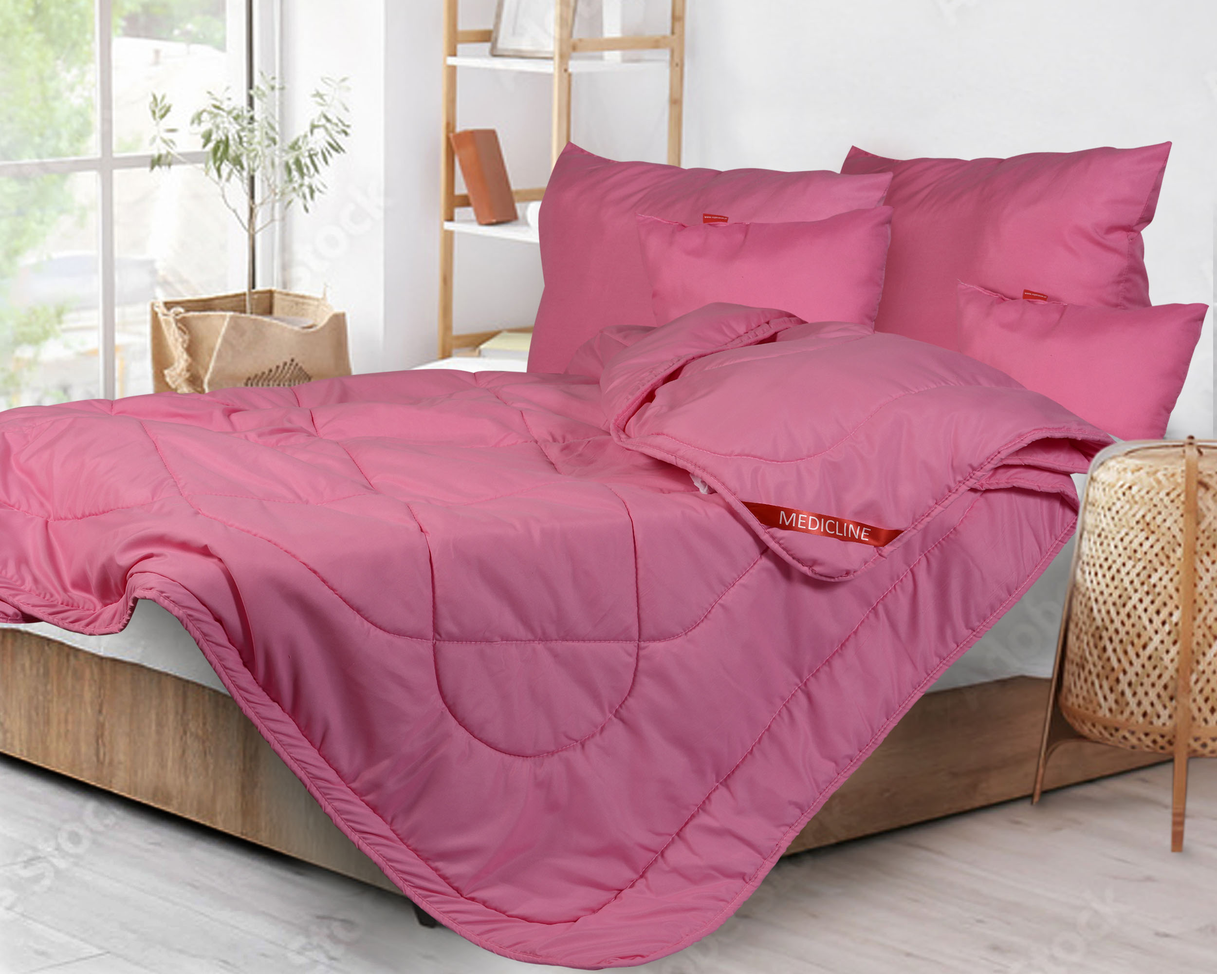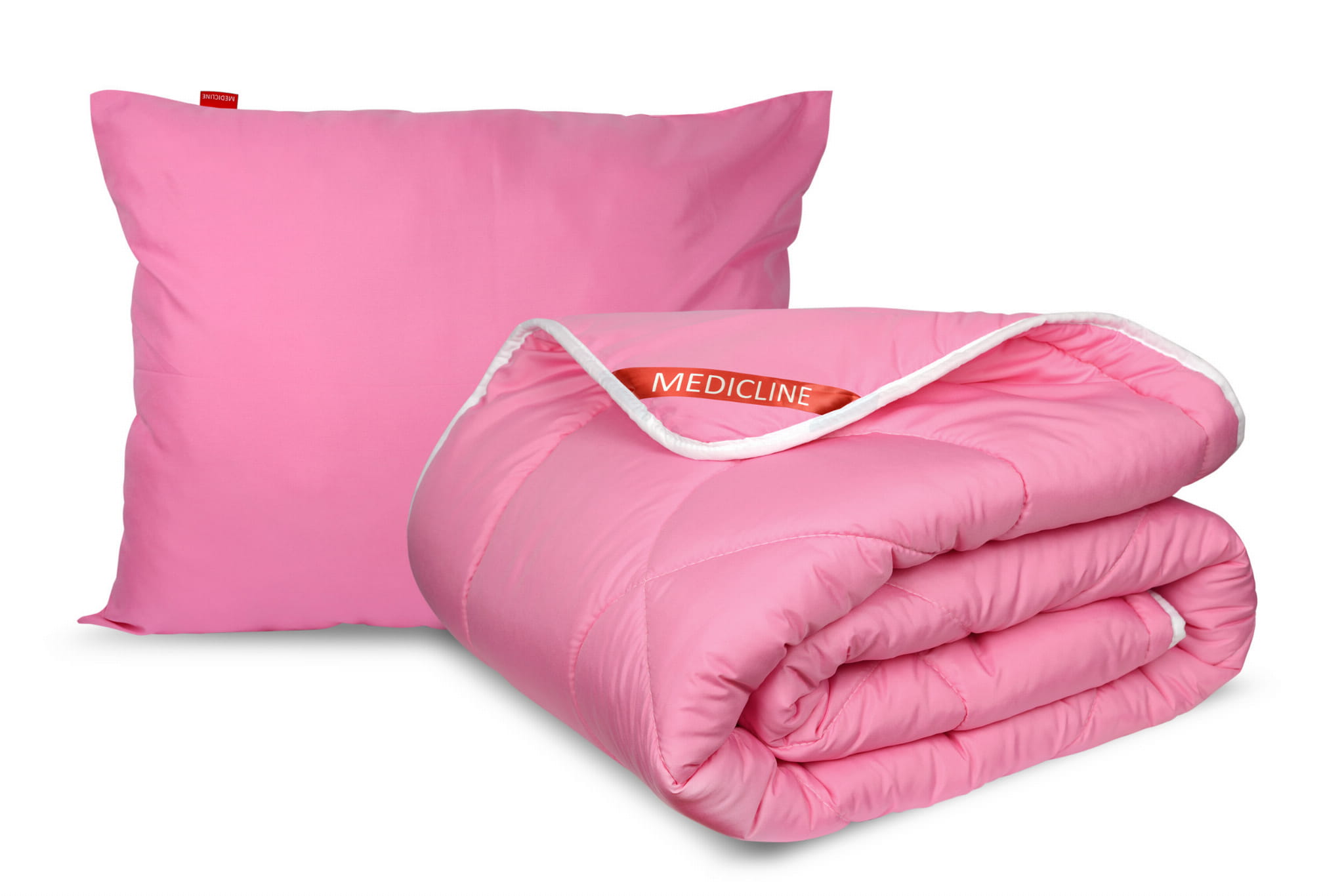 Zestaw całoroczna kołdra z lamówką z pikowanej mikrofibry różowej + duża poduszka 70x80, GWARANCJA spokojnego i dobrego snu!
