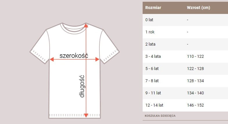 Tabela rozmiarowa: