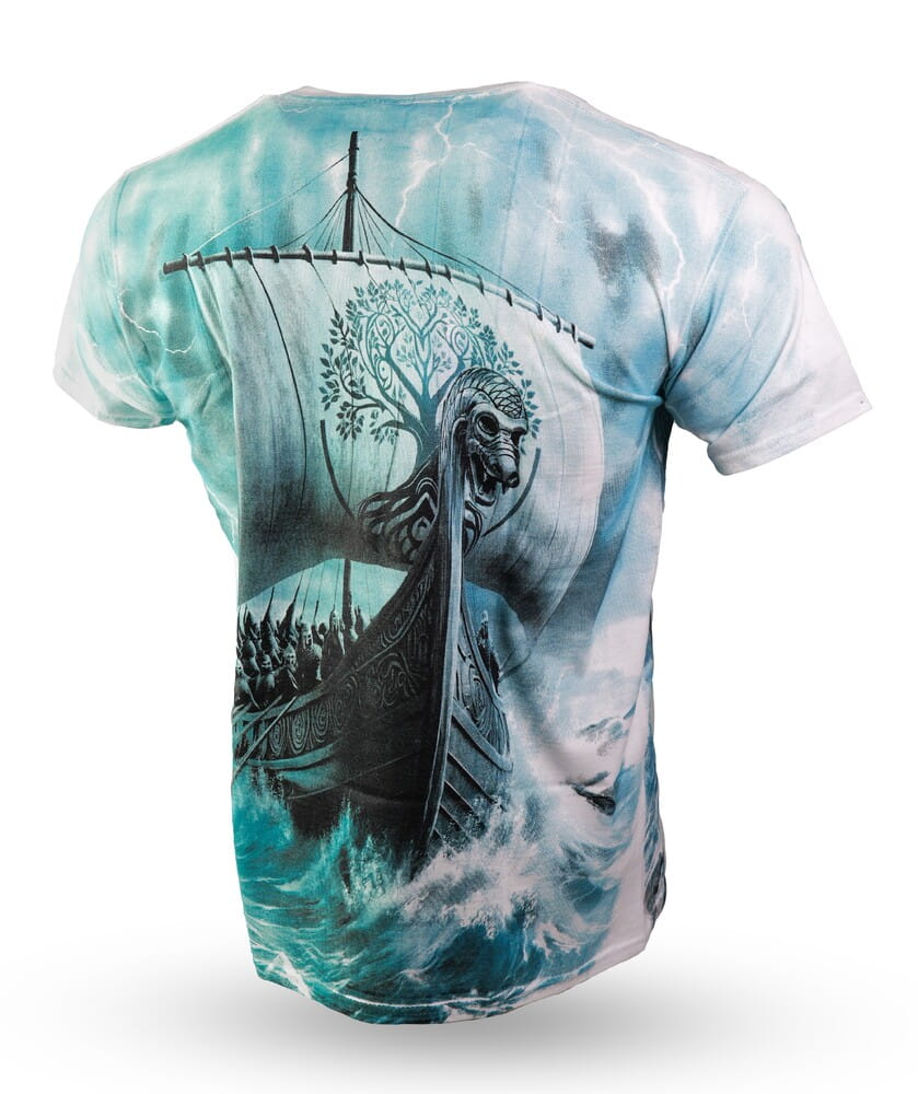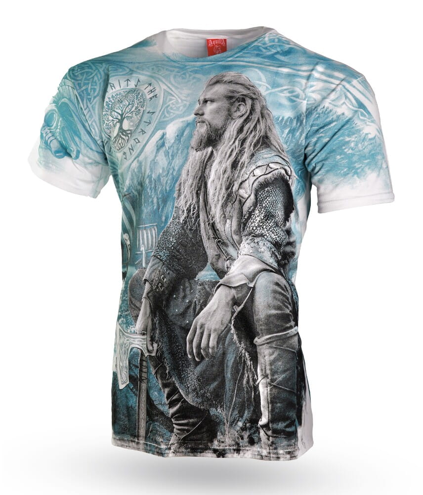 Koszulka sportowa z wizerunkiem Wikinga nordycka z motywem Vikingów wykonana przez polskiego producenta odzieży sportowej. Podczas projektowania oraz wykonania koszulki zadbano o jej najdrobniejsze detale. Nadruk na koszulce wykonany został przy pomocy sitodruku. Jest bardzo trwały i nie ulega zniszczeniu podczas użytkowania. Produkt należy prać w temperaturze nie przekraczającej 40 stopni, pozwoli to zdecydowanie dłużej zachować trwałość nadruku.