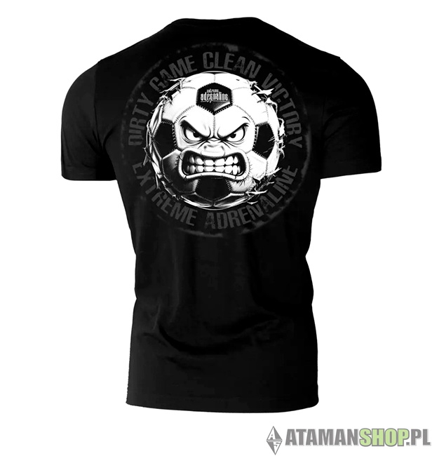 Czarna koszulka uliczna z motywem piłki nożnej i hasłem Brudna gra czyste zwycięstwo to propozycja dla fanów sportu, którzy cenią wyrazisty, miejski styl. Projekt nawiązuje do emocji stadionowych i ducha rywalizacji, podkreślając pasję do futbolu oraz charakter streetwearowej odzieży kibicowskiej.