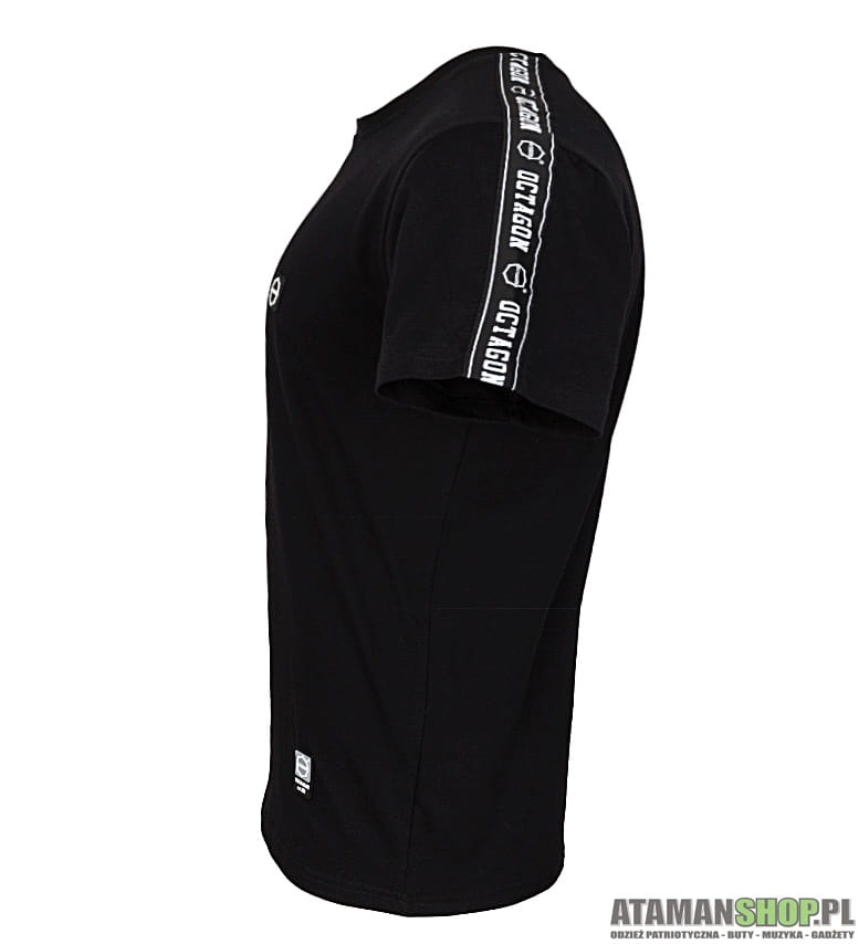 Z nadrukiem czarnym, tshirt z krótkim rękawem, koszulka octagon z białym paskiem lampasy