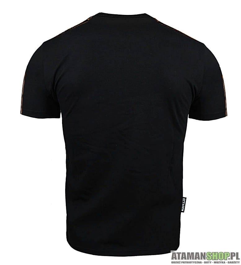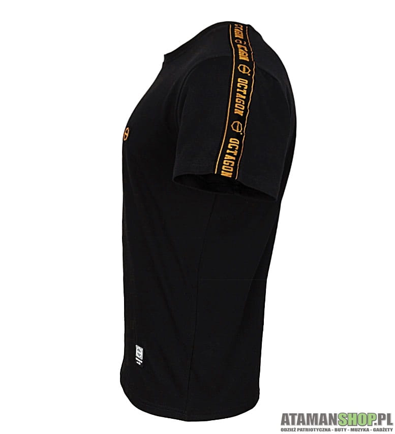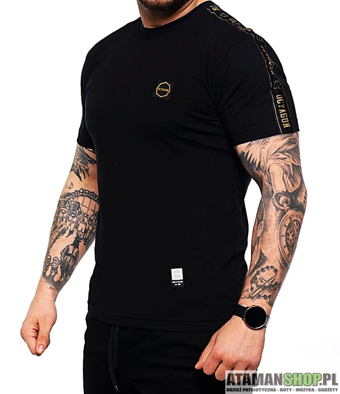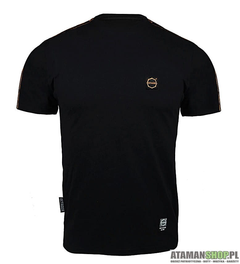 Z nadrukiem czarnym, tshirt z krótkim rękawem, koszulka octagon ze złotym paskiem lampasy