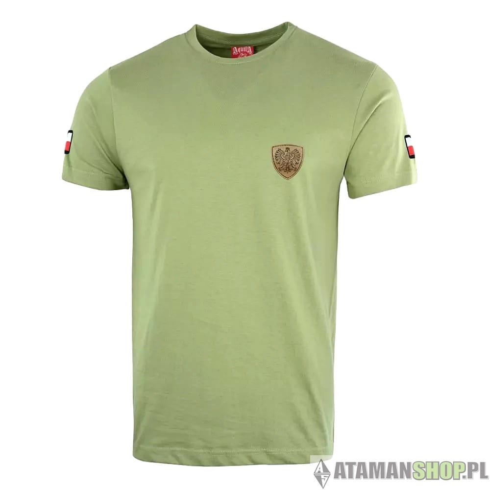 Koszulka patriotyczna flaga, Polska, z flagami na rękawach, military, olive