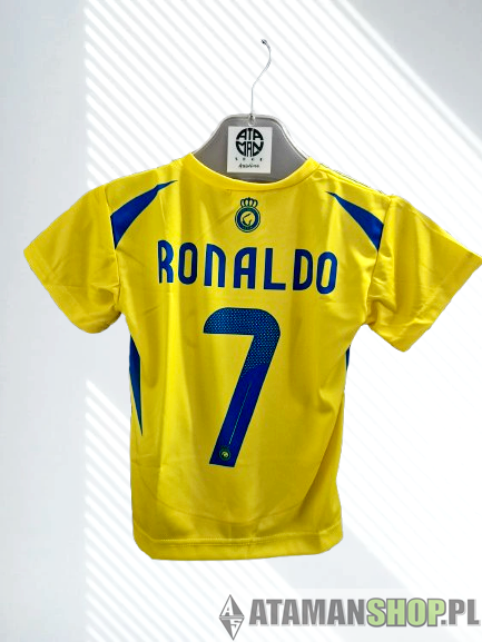 Koszulka piłkarska Ronaldo Al-Nassr 7 – żółto-granatowa, dla dzieci, produkcja Polska