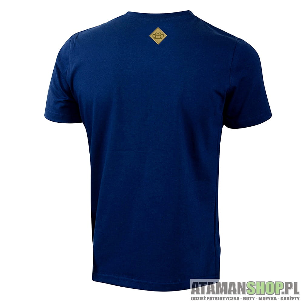 Granatowa koszulka polskiej marki sportowej. Wykonana została z wysokiej jakości bawełny, która zapewnia doskonały komfort cieplny oraz nie ulega rozciąganiu. Lamówka przy karku chroni przed otarciami. Wysokiej jakości nadruk z przodu koszulki oraz na plecach wykonany przy pomocy sitodruku. Koszulka sygnowana jest logo producenta, które poza nadrukiem, znajdziemy także w formie aplikacji naszytych na powierzchni koszulki.