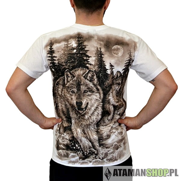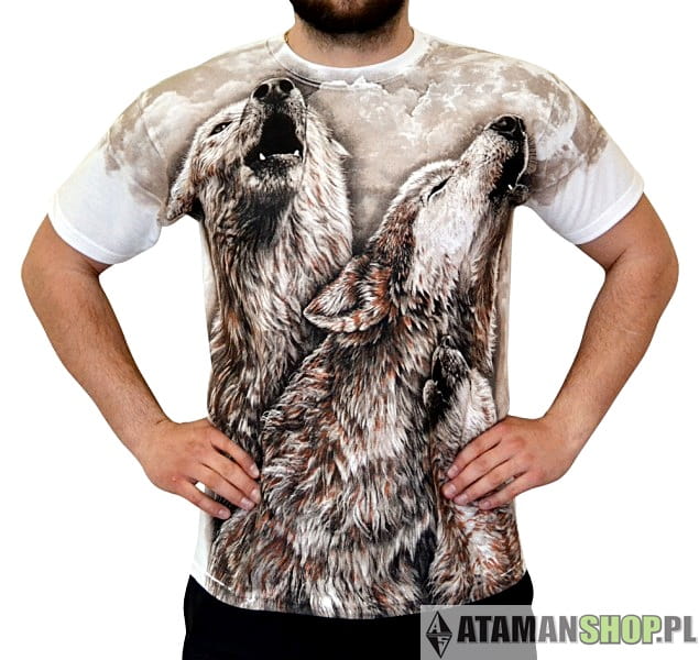 Koszulki Sport, odzież uliczna, nadruk z wilkiem z przodu koszulki oraz z tyłu wyjący wilk