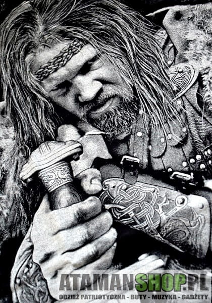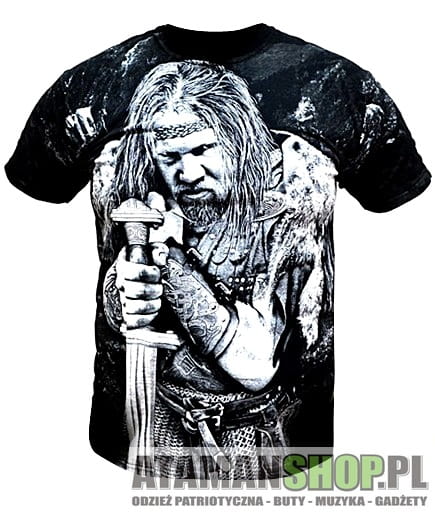 Koszulka sportowa z wizerunkiem Wikinga nordycka z motywem Vikingów wykonana przez polskiego producenta odzieży sportowej. Podczas projektowania oraz wykonania koszulki zadbano o jej najdrobniejsze detale. Nadruk na koszulce wykonany został przy pomocy sitodruku. Jest bardzo trwały i nie ulega zniszczeniu podczas użytkowania. Produkt należy prać w temperaturze nie przekraczającej 40 stopni, pozwoli to zdecydowanie dłużej zachować trwałość nadruku.
