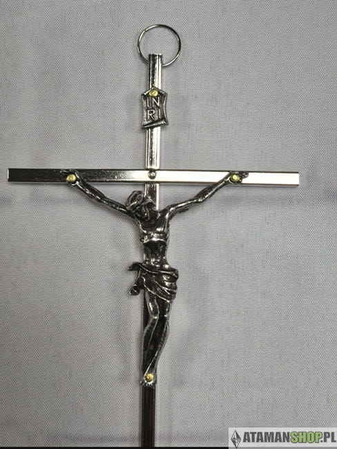 Wykonany z trwałego metalu, odporny na ścieranie, symbolizuje mękę, śmierć i zmartwychwstanie Chrystusa, przypominając o Jego miłości, ofierze i obecności w życiu codziennym.