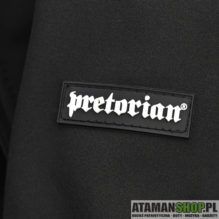 Wysokiej jakości wodoodporna kurtka typu Softshell marki Pretorian. Kurtka posiada wysoki kołnierz. Wszystkie zamki są wodoodporne. W kapturze oraz u dołu kurtki zastosowano regulację obwodu przy pomocy stoperów, natomiast regulacja rękawów odbywa się dzięki rzepom na końcu rękawów. Na lewym ramieniu kurtka posiada gumkę z wizerunkiem loga marki.