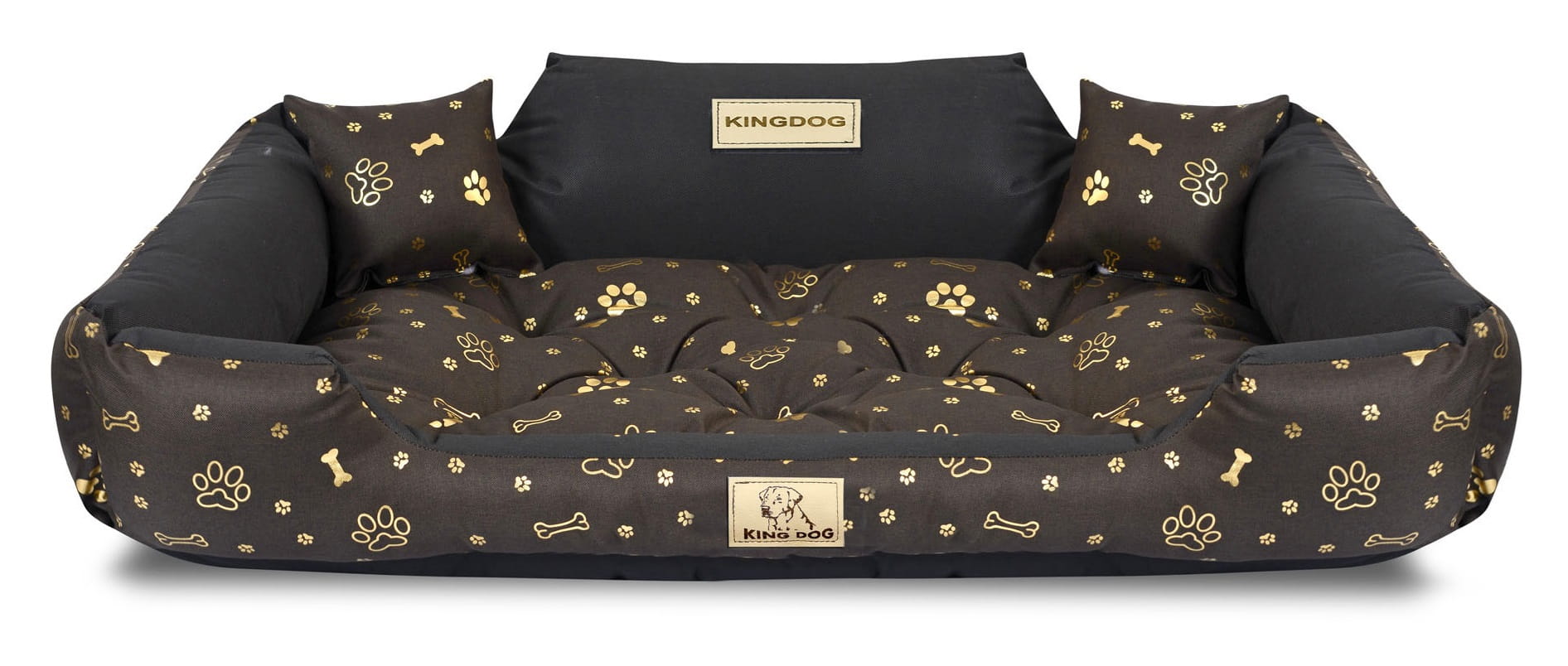 Wytrzymałe WODOODPORNE legowisko dla psa KINGDOG wzór KOŚCI ZŁOTE, PERSONALIZOWANE imieniem pupila!