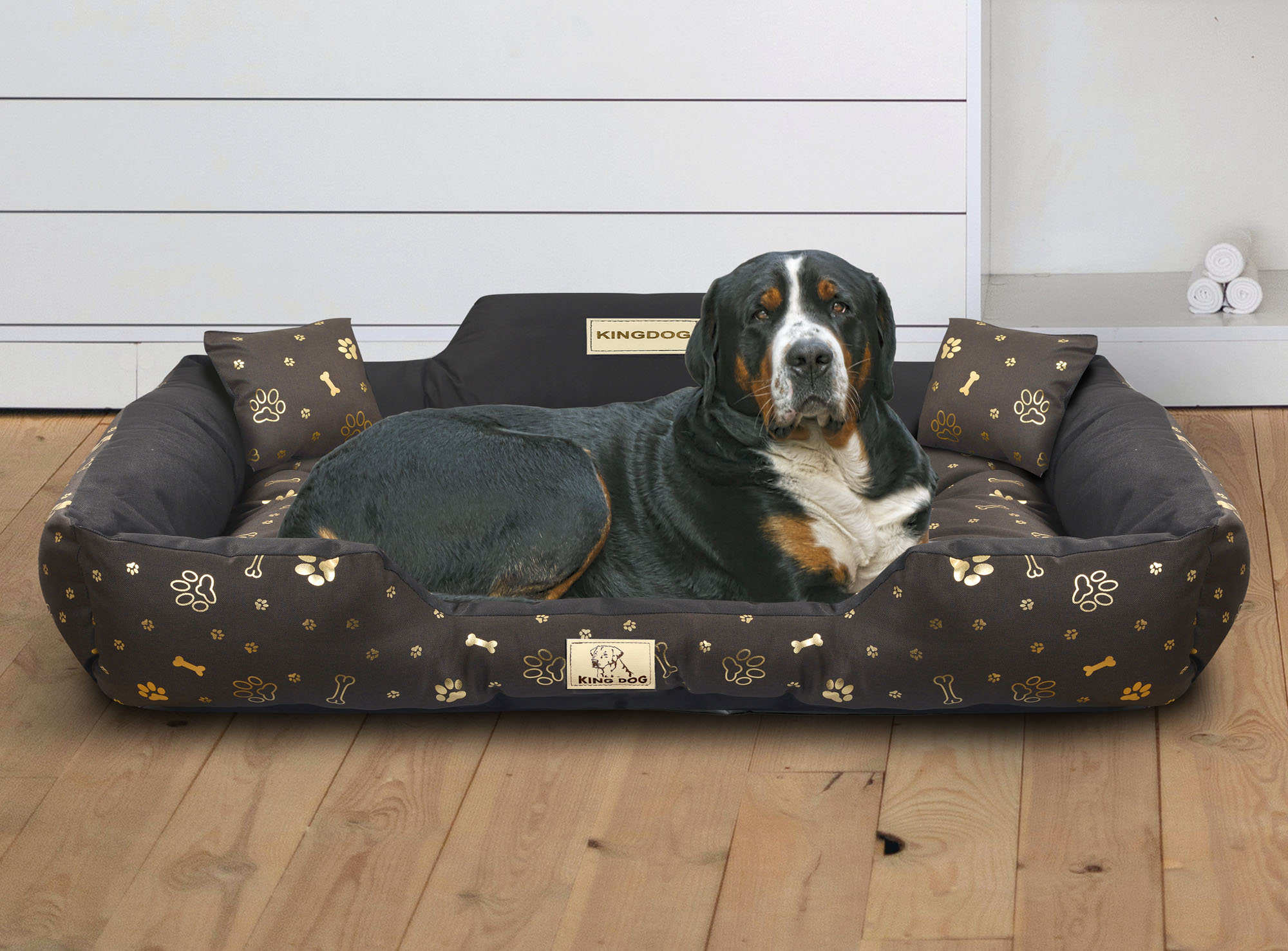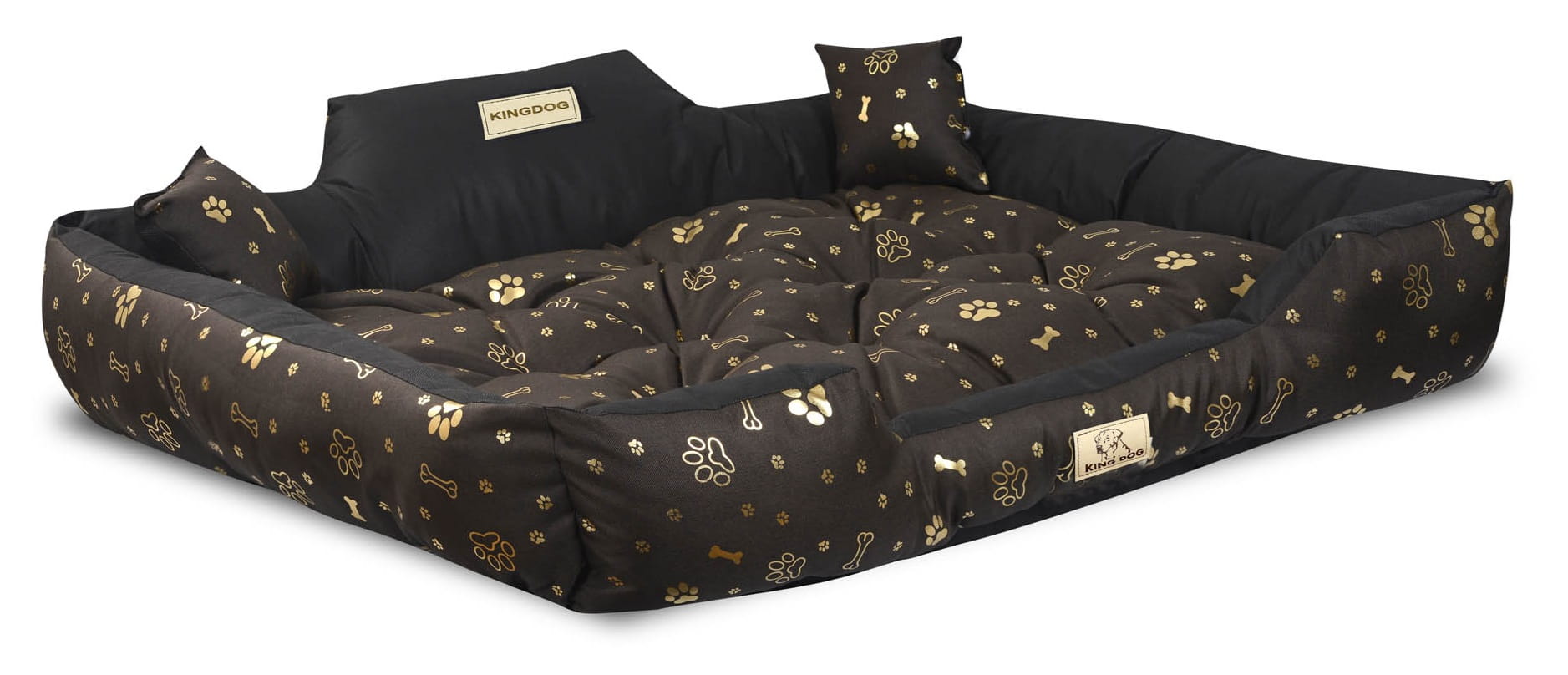 Legowisko dla psa kojec KINGDOG 115x95 cm personalizowane wodoodporne kości złote