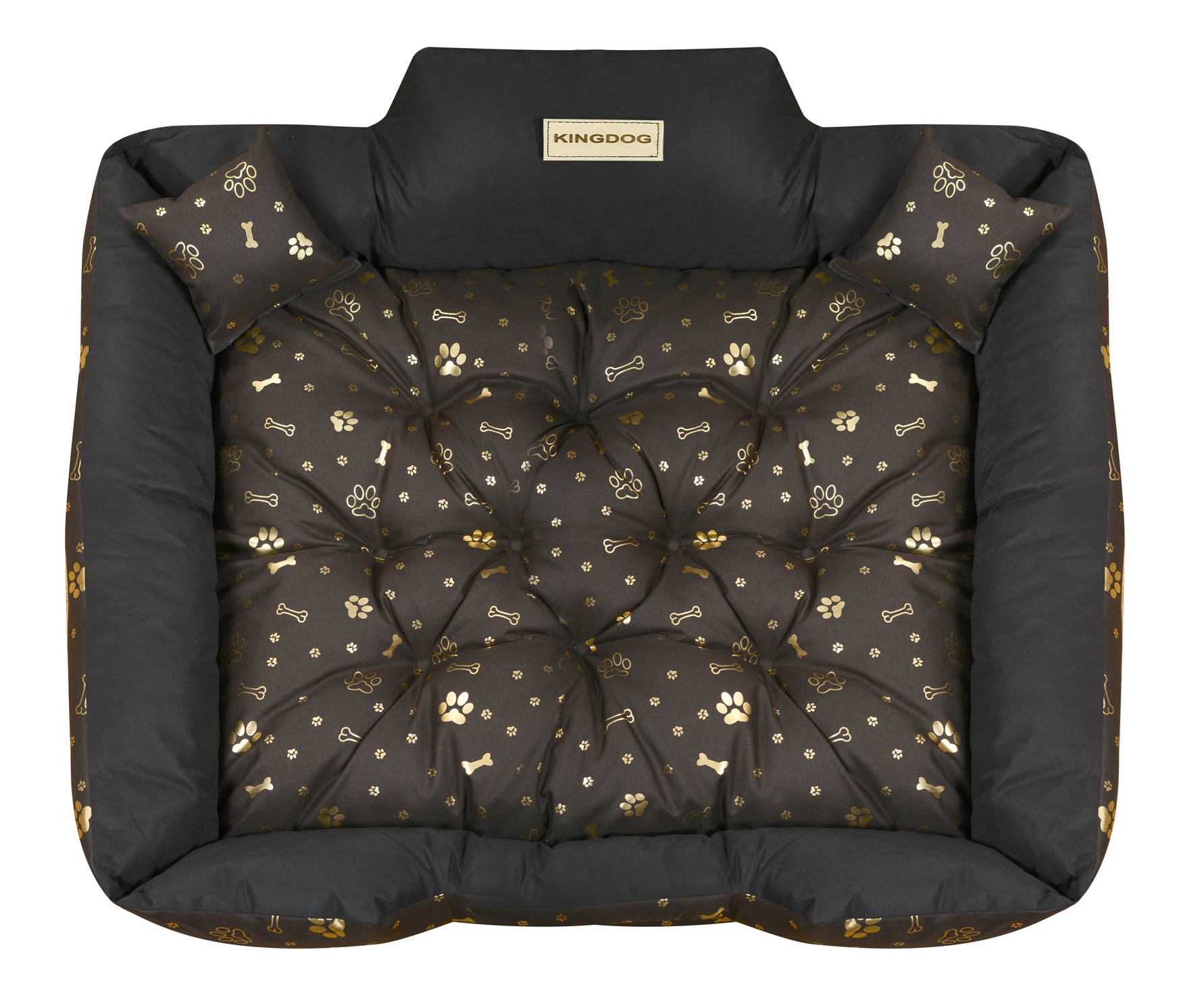 Wytrzymałe WODOODPORNE legowisko dla psa KINGDOG wzór KOŚCI ZŁOTE, PERSONALIZOWANE imieniem pupila!