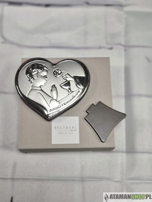 Obrazek srebrny w kształcie serduszka 8x7 cm to wyjątkowa pamiątka I Komunii Świętej, łącząca w sobie elegancję, duchowe znaczenie i trwałość. To prezent, który zachwyci zarówno dziecko, jak i rodziców, przypominając o jednym z najważniejszych wydarzeń w życiu duchowym.