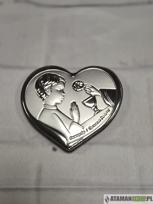 Pamiątka I Komunii Świętej – Obrazek Srebrny Serduszko 8x7 cm