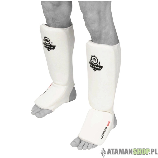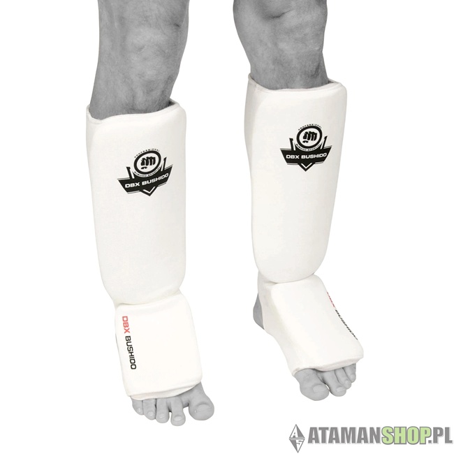 Elastyczne ochraniacze piszczeli i stopy shinrage białe – materiałowa ochrona do sportów walki
