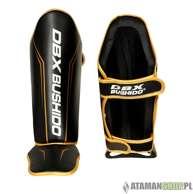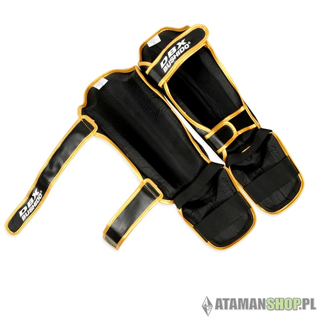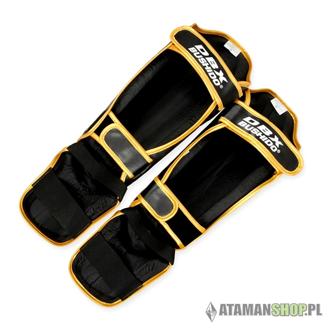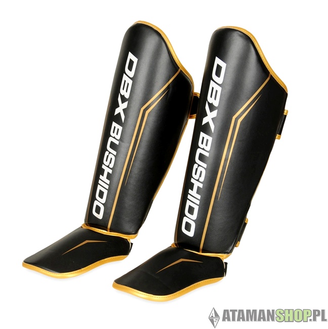 Ochraniacze na goleń i stopę czarno złote – sportowa ochrona bez kompromisów